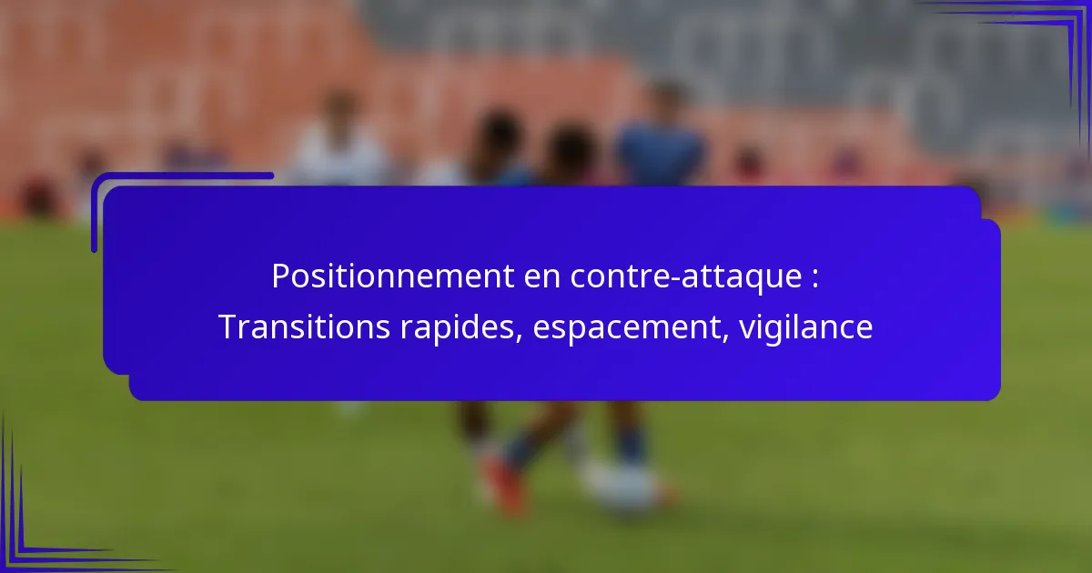 Le positionnement en contre-attaque est une stratégie vitale qui se concentre sur le placement et le mouvement efficaces des joueurs pour tirer parti des faiblesses d’un adversaire lors d’une transition rapide de la défense à l’attaque. En exécutant des transitions rapides, les équipes peuvent capitaliser sur les lacunes défensives créées par les erreurs de leurs adversaires, rendant l’espacement et la prise de conscience essentiels pour maximiser les opportunités de marquer. Cette approche tactique améliore non seulement le potentiel offensif, mais nécessite également une exécution précise pour maintenir l’intégrité défensive.